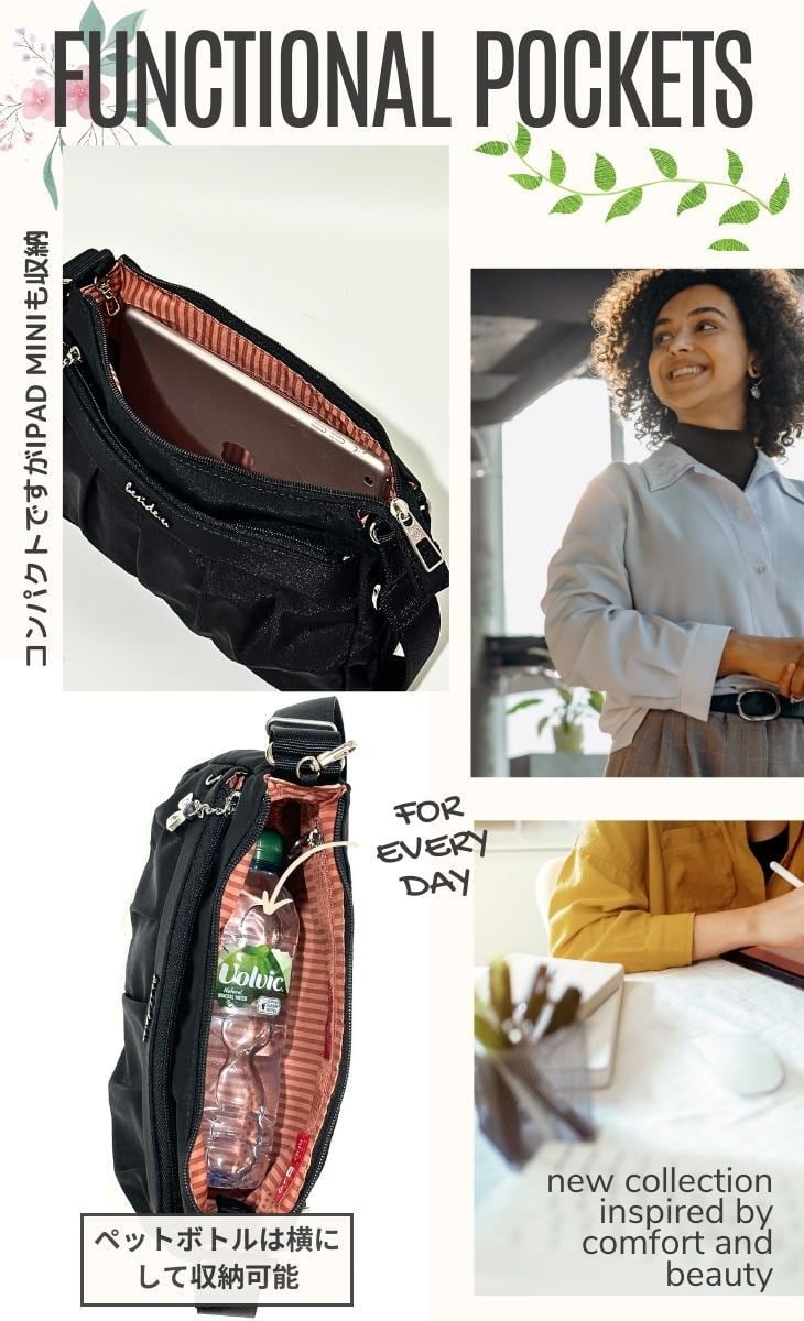 ショルダーバッグ レディース 斜めがけ コンパクト ポケット たくさん いっぱい 大人 BCSA-104 ビジネスバッグ ブランドバッグ マザーズバッグ 普段使い 通勤 超軽量 スキミング防止 母の日 プレゼント 実用的 ペットボトル収納 軽い